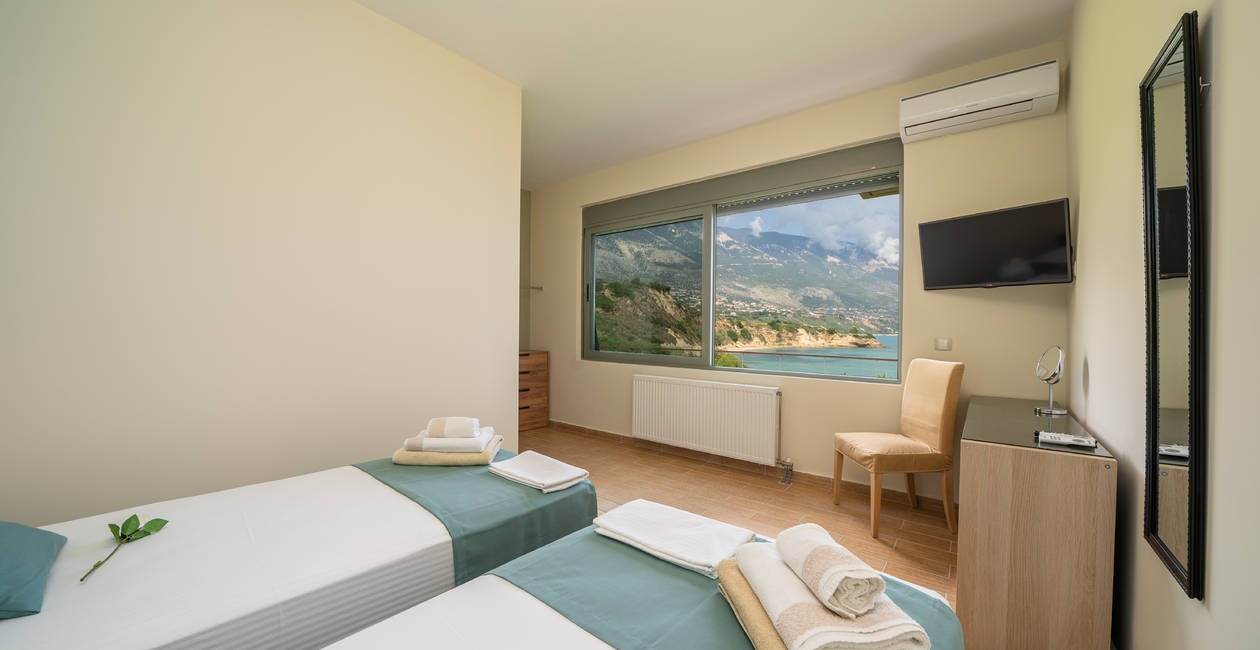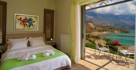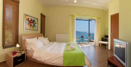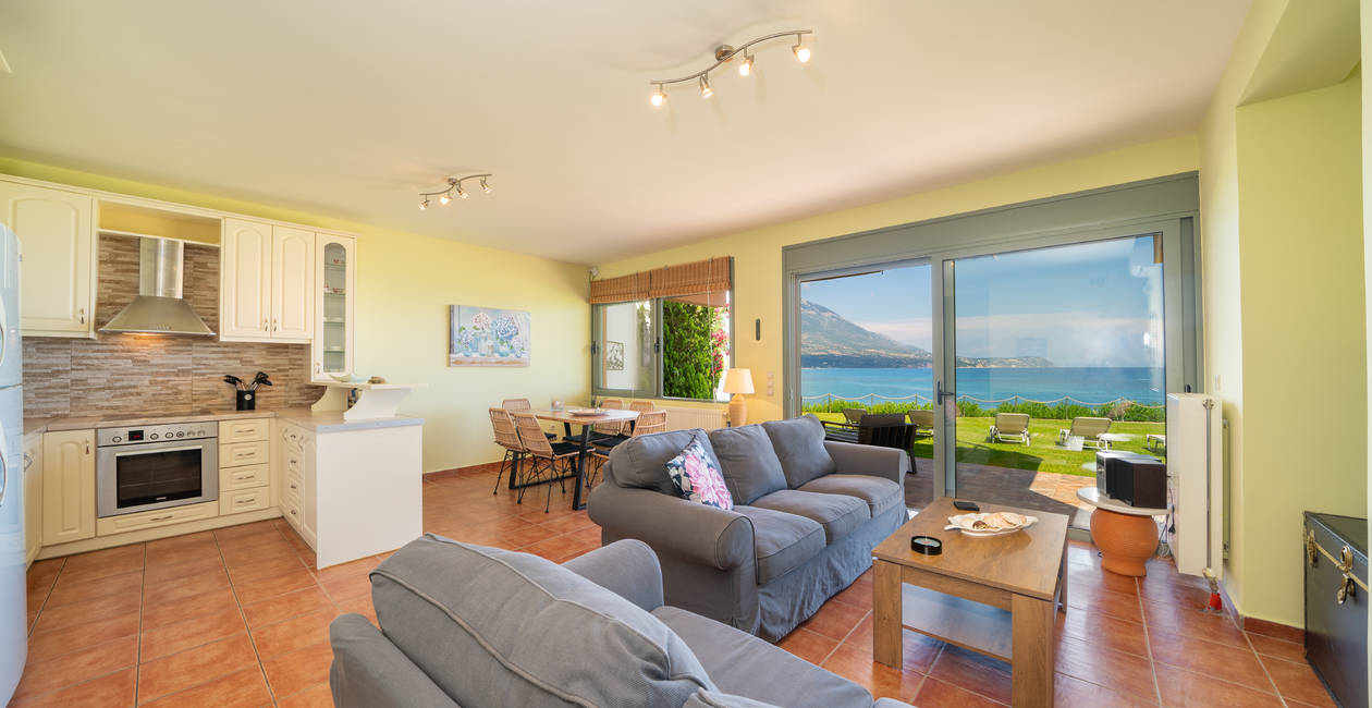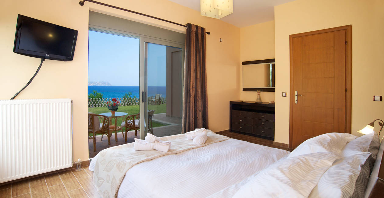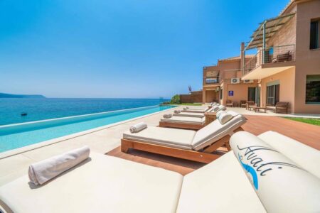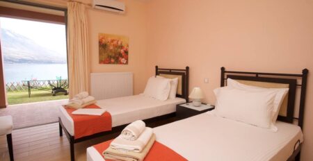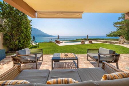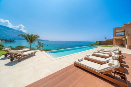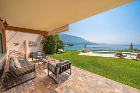 This lovely 3-bedroom, 120 sqm villa, provides accommodation for up to 6 guests. Located directly on the seafront, overlooking blue crystal clear waters and sandy shores has direct access to the sea and is a cost-effective holiday option for families with children or a romantic getaway for couples and honeymooners.