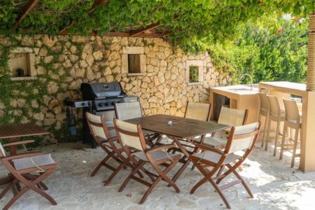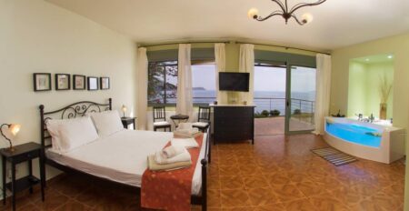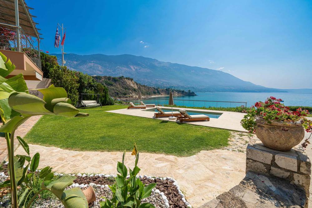 240 sq.m. of living space, 5 bedrooms, 4 bathrooms, a spacious living room, a roofed balcony, a large veranda, a 50 sq.m. infinity & saline chlorinated, heated swimming pool with hydro massage features and scenic terraced gardens, which lead straight down to the water’s edge, provides accommodation for up to 10 guests.