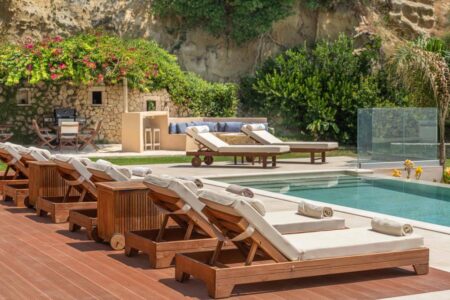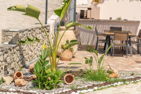 Both villas, Avali Family and Grand Avali, offer privacy in exquisite surroundings—the scenic terraced gardens lead straight down to the water’s edge, where a gate divides the property from the sea and the flat rock below, which is suitable for sunbathing and swimming. “Avali” means a small, protected and sheltered harbor. One can also continue to the beautiful sandy Agios Thomas Beach, which is a mere 3 minutes’ walk from the property. The villas are the ideal choice for people looking to enjoy the sun and the sea, and two private pools, secluded from the crowded tourist areas of the island. They have direct access to the sea and are a cost-effective holiday option for families with children or a group of friends. Avali sea resort is also the ultimate honeymoon, wedding or any other special occasion location on Kefalonia island.