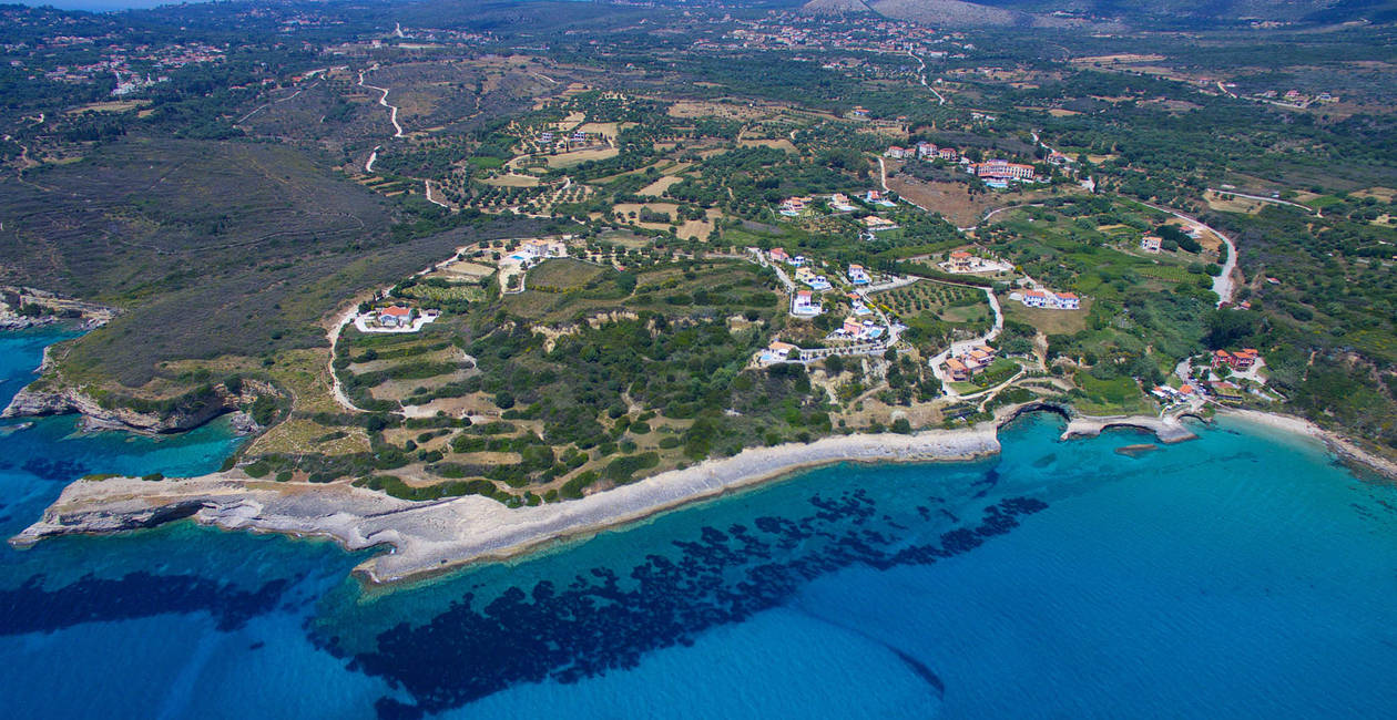 The area offers the perfect balance between relaxing isolation and easy access to the more cosmopolitan part of the island. There are no hotels in the surrounding area, and the few private villas are far enough to maintain an intimate atmosphere. A couple of taverns and a beach canteen are located within walking distance, while a short drive will bring you to several restaurants and mini-markets.