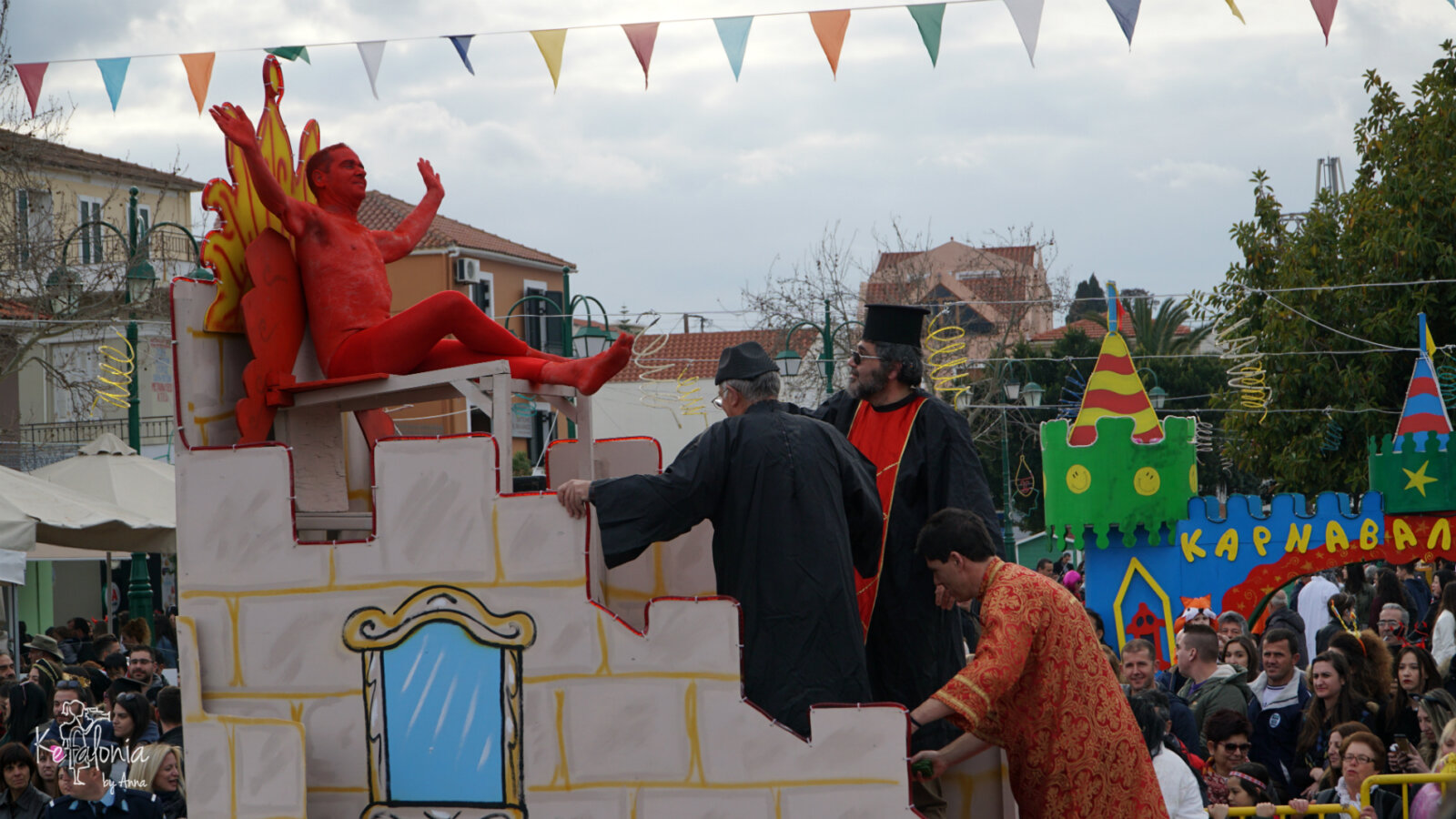 These days, every year hundreds of people gather in and around the square in Lixouri, Argostoli to watch the parade pass and indulge in some fun! The floats and masquerading groups involved invariably satirise the current political and social situations of the island, Greece and sometimes the rest of the world, using sketches, dance, music and narration.