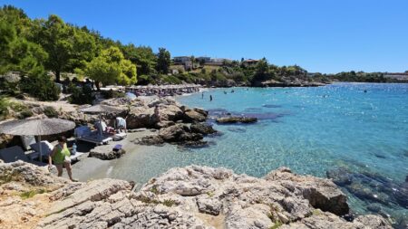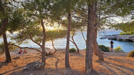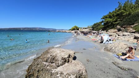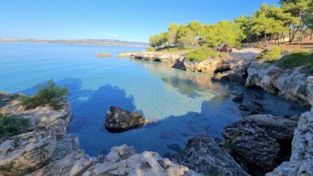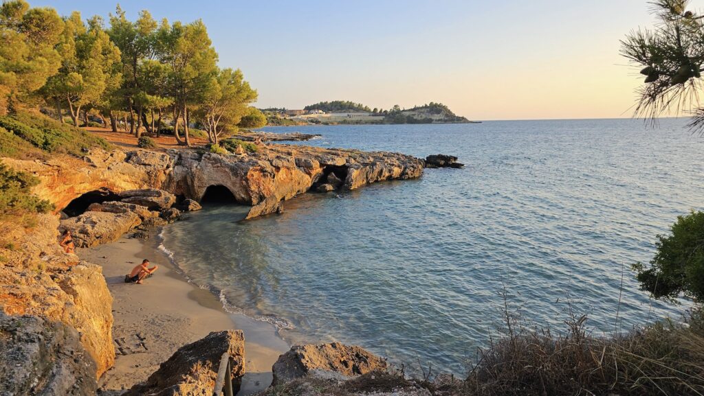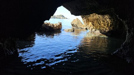 Less than 2km from Argostoli centre, nestled halfway to Makris Gyalos in Lassi, you will find Gradakia Beach. Before you reach the beach, there are a series of small coves filled with hidden caves and crystal-clear waters. When the sea is calm, it’s a beautiful place to explore—especially if you have a young child, as the area feels like a natural playground.
