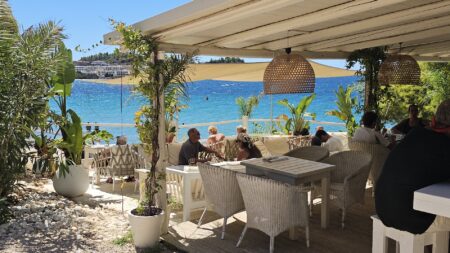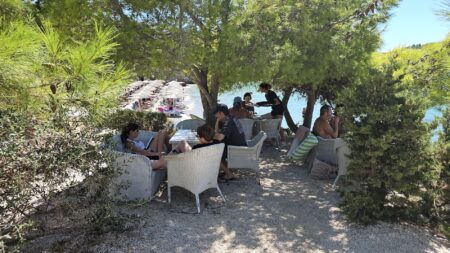 It’s also common to spot turtles and even the local monk seals that live nearby. Visitors can also swim at Gradakia Beach itself, where there are plenty of sunbeds (perhaps too many!), as well as a beach bar offering snacks and cold drinks. The view from the area is stunning and makes the whole spot worth discovering. You can also enjoy the sun diving behind Vardiani Island and Lixouri peninsula while having a drink.