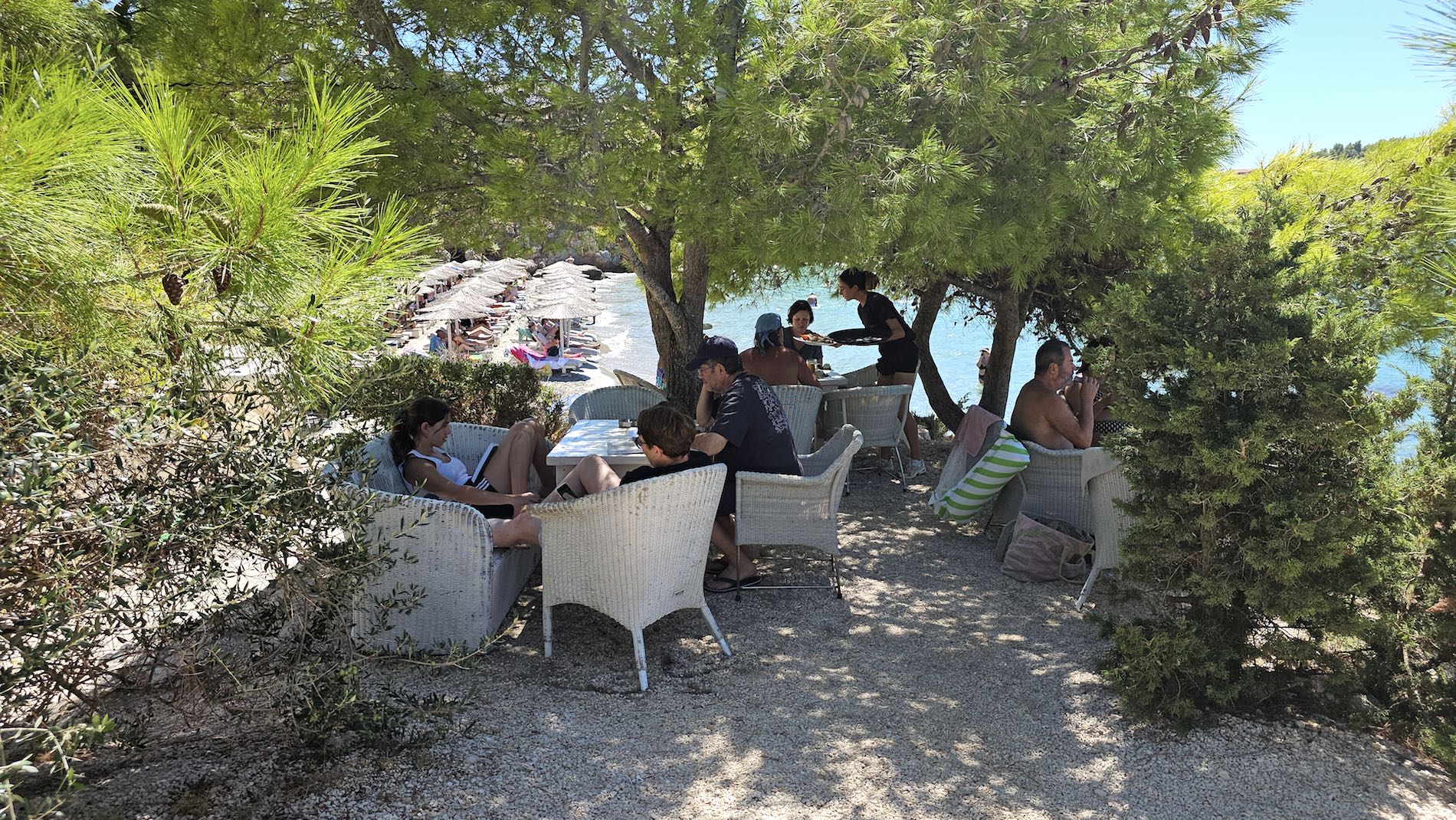 There is a sign on the main road of Lassi to reach the beach, but the road at the end is a dirt road, so be careful if you have a low car. However, there is ample parking space. The beach bar offers a shower and a changing room.