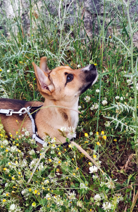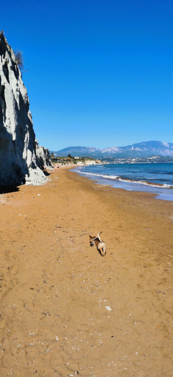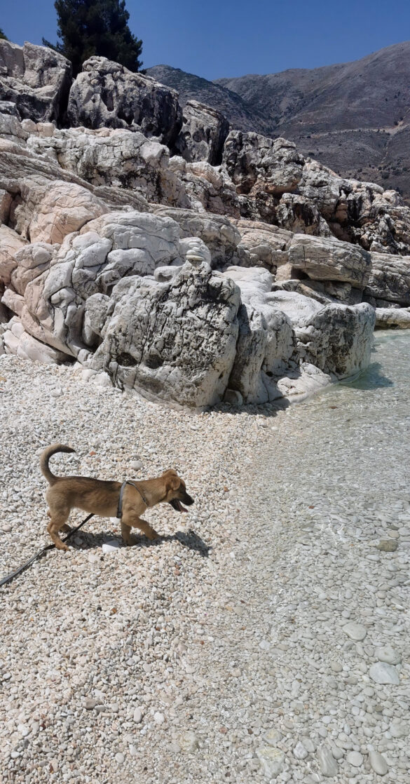 She was very scared and quiet at the beginning and she followed me wherever I was going for the next 2-3 months. Babis, the trainer said she is a very energetic dog that needs to ease off her energy by a lot of running, sniffing and exploring around! So that is what we do! Now we explore the island together, we sniff and discover new places every day to share them with you! Louisa has become now a member of the family!