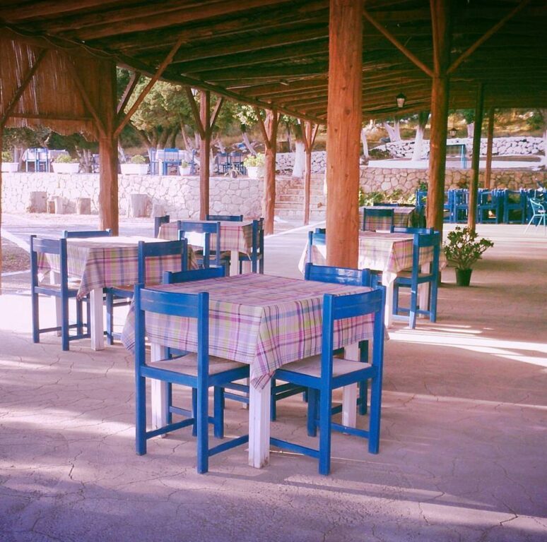 If you are staying in the area or visiting the western part of the island, don’t miss this family-run taverna of mother mary and son George. In a peaceful environment with amazing sunset views, simple still cozy, in an elevated position, you will enjoy a selection of homemade local dishes cooked on a traditional wooden stove that will satisfy your senses at very reasonable prices. Some of my favorite dishes include traditional mousaka and lamp chops.