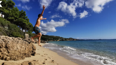 Feeling the sand between our toes we spent the day relaxing and playing on Koroni Beach. Swimming in the calm and shallow waters beneath a backdrop of greenery. The day passed so we wandered up...