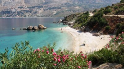 With exotic beauty and amazing water colours, Vouti is a great choice! Impressive rocks separate the beach in two, sand is mixed with fine pebbles. Vouti has a beach bar and is partly organized.