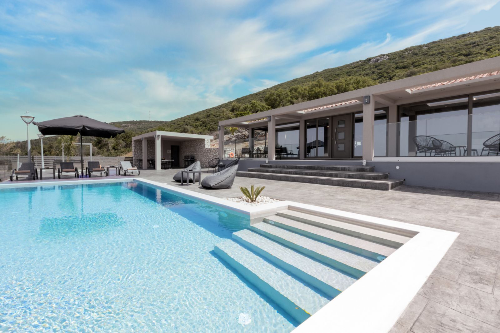 Secluded, modern, luxury villa with private pool, outdoor cinema, external gym nestled in 5.500 m2 of lush vegetation perfectly matching the landscape and overall atmosphere of this unique, totally peace-full location can offer memorable moments of total relaxation.
