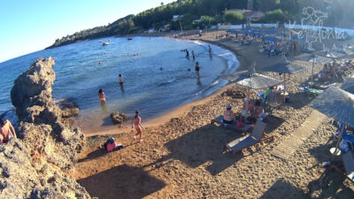A little lake formed by a rock that separates the beach in two and the reddish brown sand with swallow waters and a great taverna is ideal for families with children wanting to have fun...