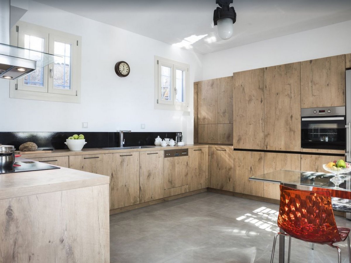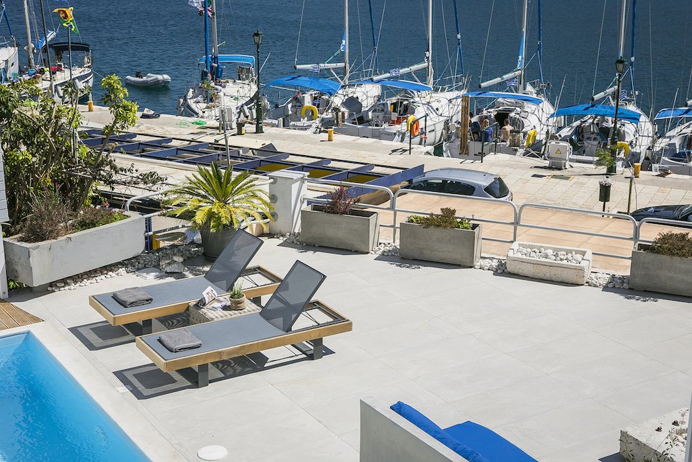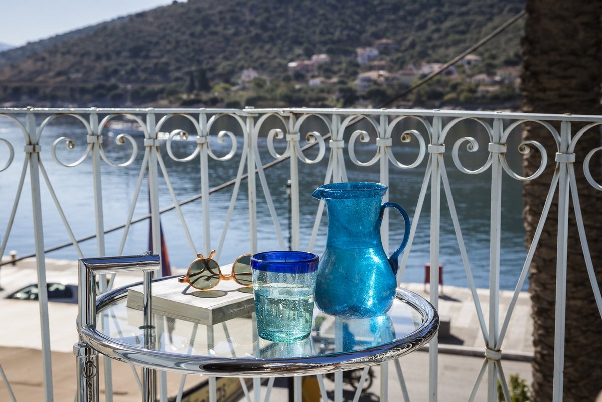Maintaining an imposing exterior of quaint Eptanisian architecture, the high-ceiling, minimalistic interior constitutes a welcome surprise. The distinctive details – like contemporary art work, elegant furniture, authentic vintage Greek and Japanese pieces make for a fascinating, well-balanced combination of styles, colors and textures – harmoniously complementing the sensational sea and harbor views from all of the front and side windows of the house.