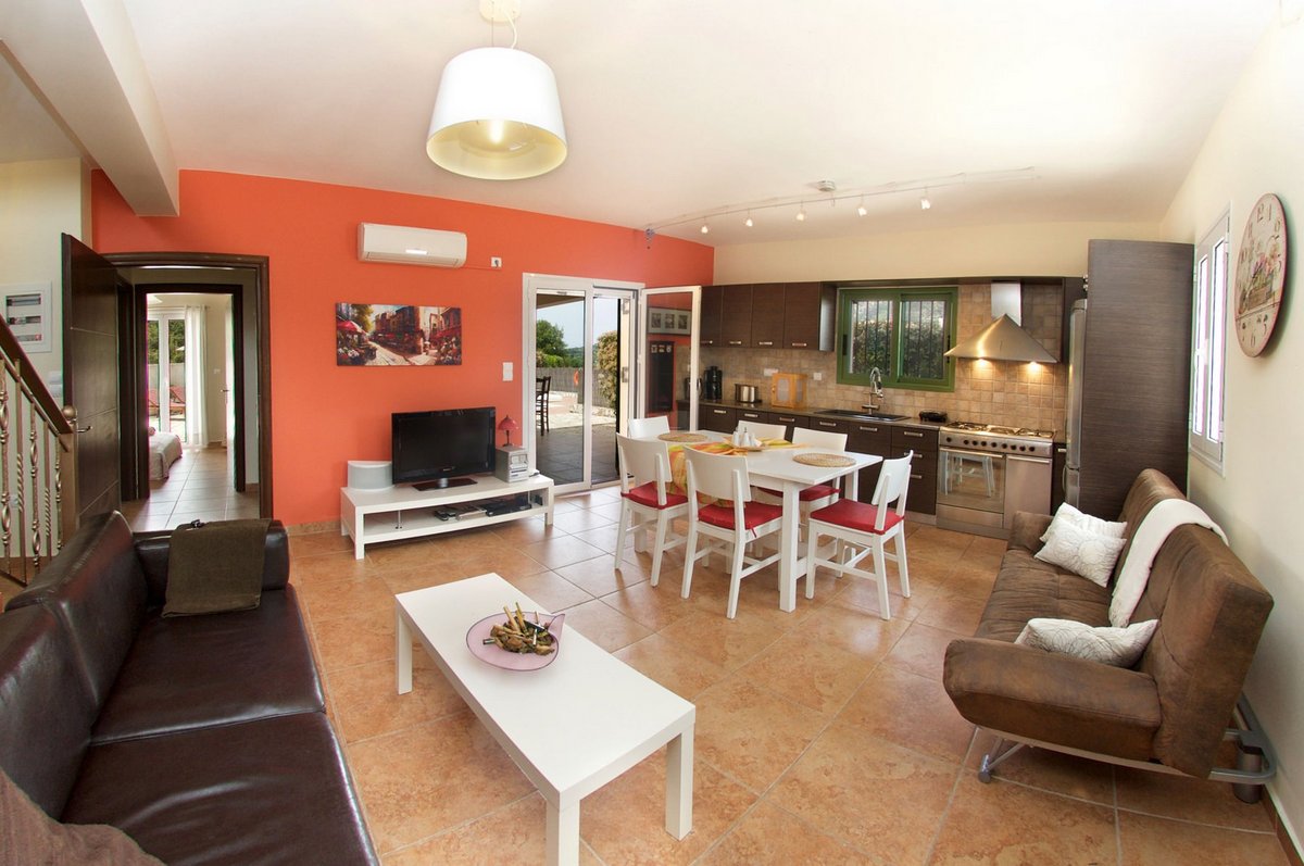 The comfortable sofa open out into a sofa bed. Villa Kanelis has a beautiful private garden and off-road parking space for 2 vehicles. At the rear of the property there is a large secluded patio-garden surrounded by rural, mountain views of Pylaros valley, with fabulous facilities including a BBQ, dining area, 7 sunbeds, 3 umbrellas, gazebo and a private pool.