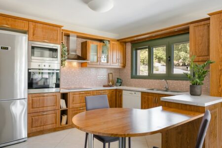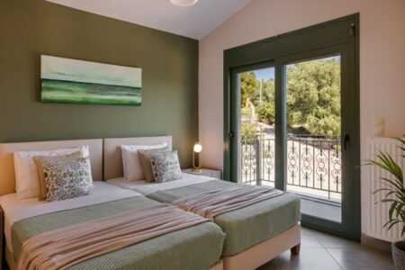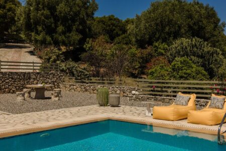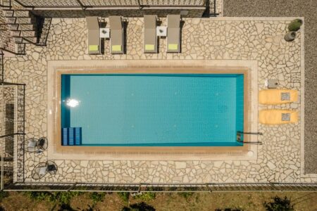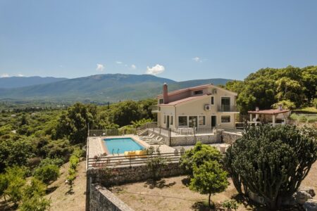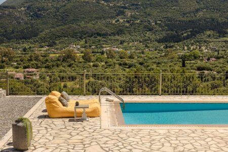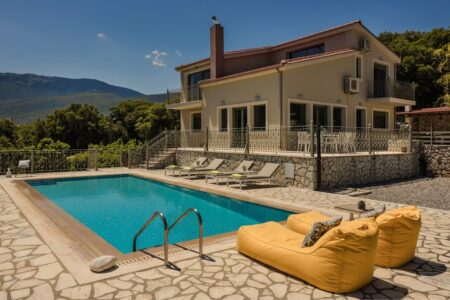 Situated in the picturesque region of Sami (eastern Kefalonia), in the village of Poulata. The port town of Sami is just 5km away, here you will find a variety of grocery stores, tavernas, cafes and bars. There is a health centre, pharmacy and post office as well as a bank and ATMS. The villa is close to Melissani Lake and Karavomylos Lake.