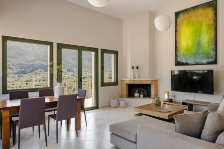 A real highlight of this luxury villa is its fabulous outdoor space. You can relax and enjoy 4000m2 of colourful secluded gardens and a private swimming pool, equipped with sunbeds and sofas. The villa is totally private and surrounded by amazing panoramic sea and mountain views.