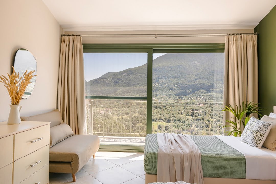 A real highlight of this luxury villa is its fabulous outdoor space. You can relax and enjoy 4000m2 of colourful secluded gardens and a private swimming pool, equipped with sunbeds and sofas. The villa is totally private and surrounded by amazing panoramic sea and mountain views.